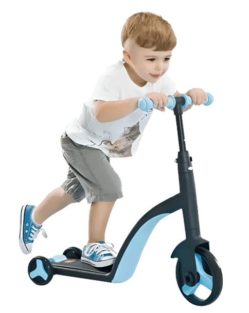 El Monopatín 3 en 1 es mucho más que un simple juguete: es el compañero de aventuras que crece junto a tu hijo. Comienza como un triciclo seguro para los primeros paseos, se convierte en una bicicleta de equilibrio para desarrollar coordinación, y finalmente en un monopatín divertido para explorar el mundo con confianza.